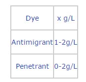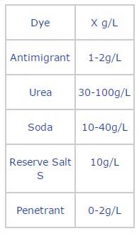 Pad dyeing liquid (residue: 70%) -----> pre-drying -----> Drying -----> Immerse and pad -----> Steaming (102-105C, 5min) -----> Washing -----> Soaping -----> Water Washing -----> Drying