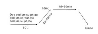 with dyes which yoked brighter and in particular fuller dyeing at low temperature,the goods are entered to the dye bath at 30-40 c,and dyed at 50 -60 c for 45 minutes.Also when pale shades are needed,goods are entered entered at low tempereture and the bath should be heated gradually.In this case,dyeing is carried out best without addition of sodium sulphate.